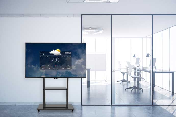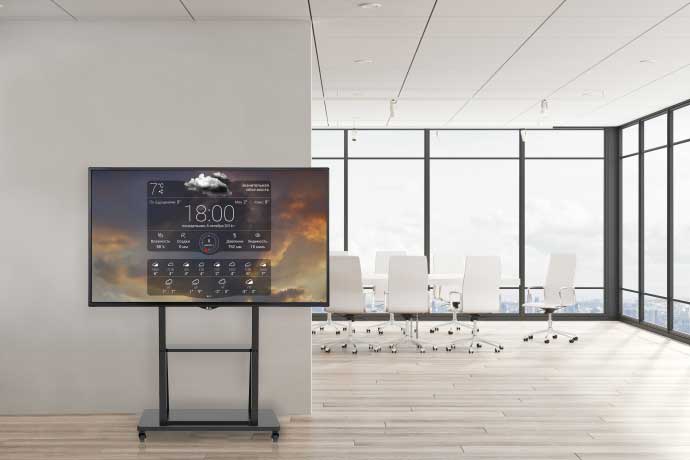 В каждой из таких зон должно присутствовать средство визуализации, в качестве которого, как правило, выступают профессиональные интерактивные дисплеи. Для их инсталляции превосходным решением являются мобильные стойки Wize. Практичные, стильные и эргономичные, они позволяют достичь надежной установки дисплея в нужной локации, за счет дополнительных настроек добиться комфортных условий просмотра для всех участников встречи или семинара и при этом обеспечивают удобное размещение дополнительных аксессуаров для спикера.