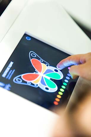 Профессиональная мультитач-панель диагональю 32 дюйма, распознающая до 32 одновременных касаний. Манипулятор PowerMate. Для съемок процесса создания картин использовалось профессиональное освещение, крепления, зеркальная камера в режиме покадровой съемки.