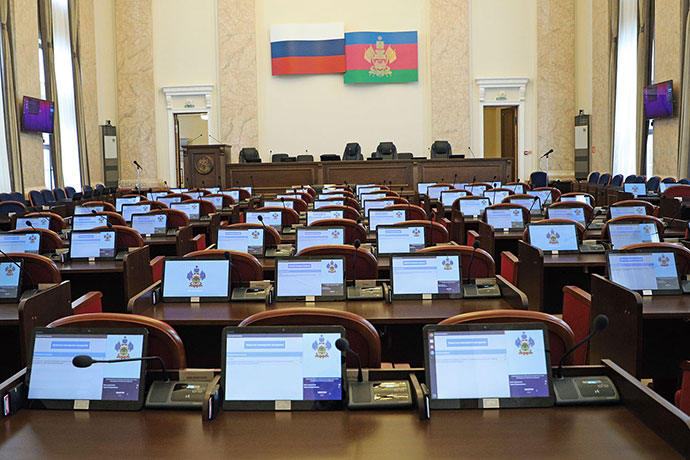 Законодательное Собрание Краснодарского края поручило компании RIWA совместно с ООО Компания «Сервис ТВ – Инфо» произвести оборудование большого зала заседаний.