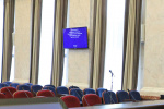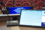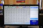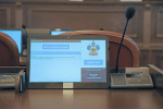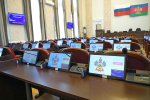 Помимо этого в трибуну возле президиума были врезаны два микрофона Shure MX418/C, которые через интерфейсный модуль VIS-AIB подключены к центральному блоку конференц-системы. Для работы с документами, голосования и трансляции повестки заседания на рабочем месте каждого делегата в зале уже имелись интерактивные четырнадцатидюймовые моноблоки AsusPRO со считывателями идентификационных карт. Схема зала с возможностью управления микрофонами делегатов выводится на специальный экран председателя собрания.